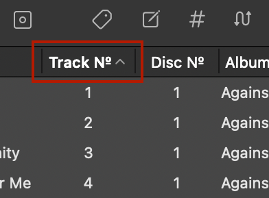 Note that the order in which columns are sorted, will have a last-to-first order of importance. Meaning that if you want sorting to be applied to Artist ▸ Album ▸ Track, in that order, you should start by clicking the header of Track, then Album, then Artist.
